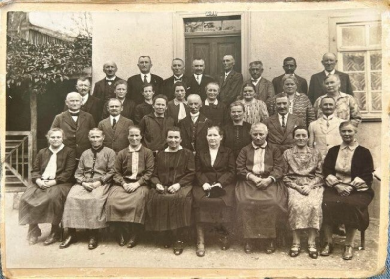 vorne v.l. Maria Reichwein Mutter von Hilde Laux, Knörrs Heine, Muth Gretha (Bottches Greta) , Bernhard Schmidt (Eiffelers),