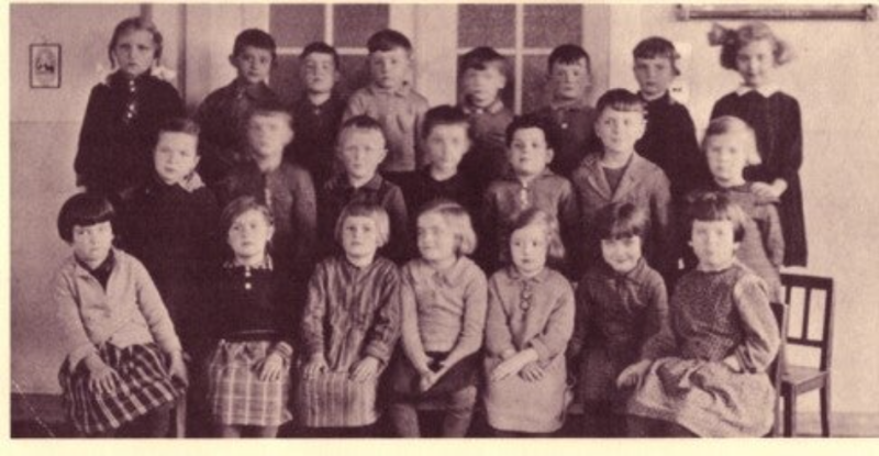 Jahrgang 1948/1949 mit Frau Hartmann. Aufnahme von 1958