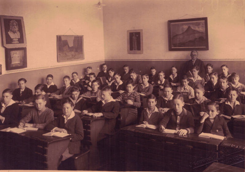 Schulzimmer 1932 mit Rektor Kohlbeck (Jahrgang 1923 ??)