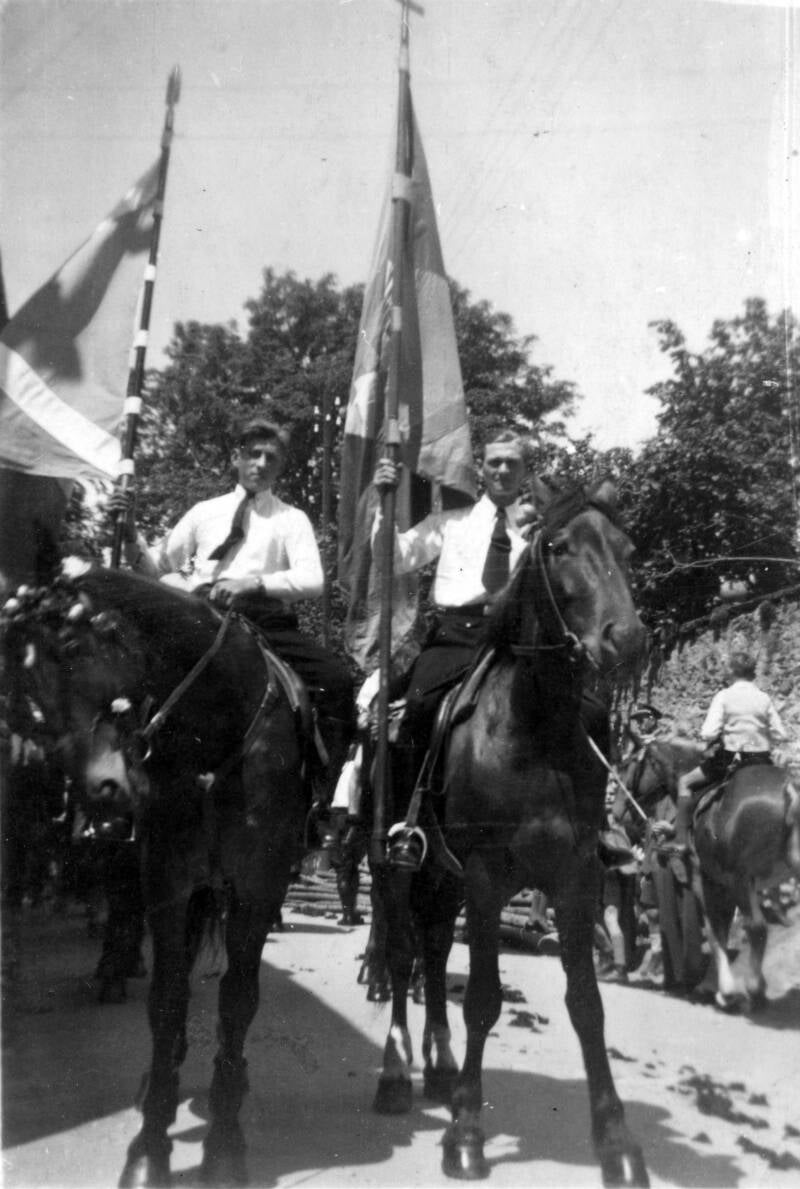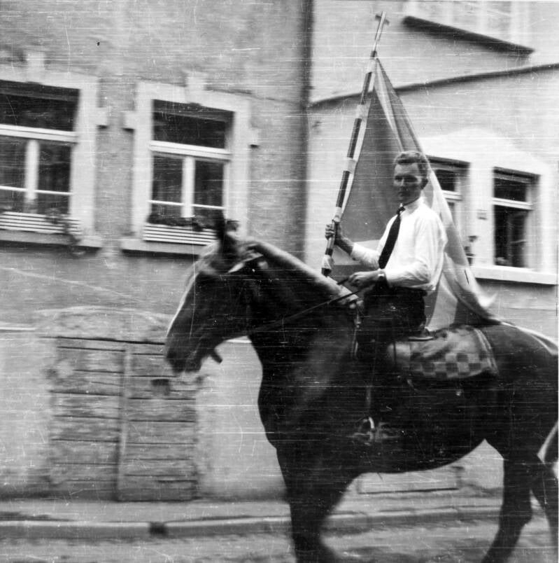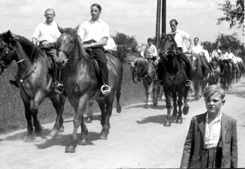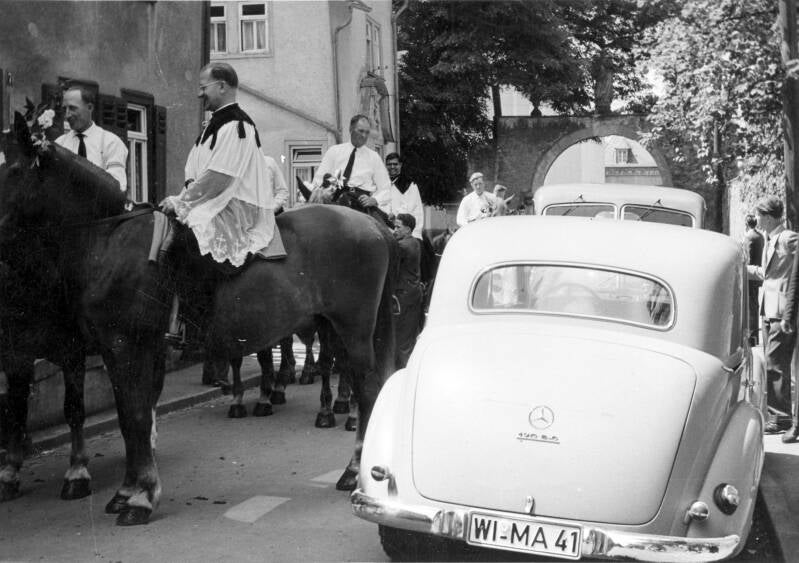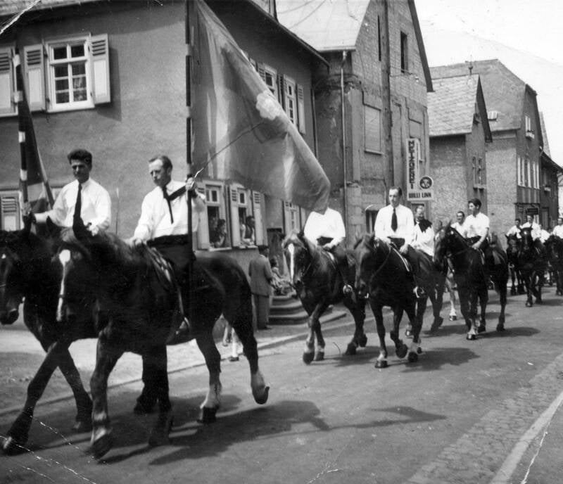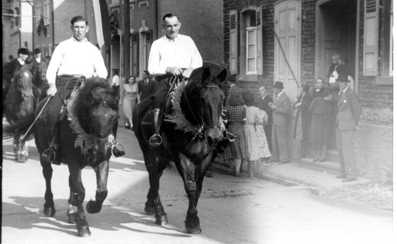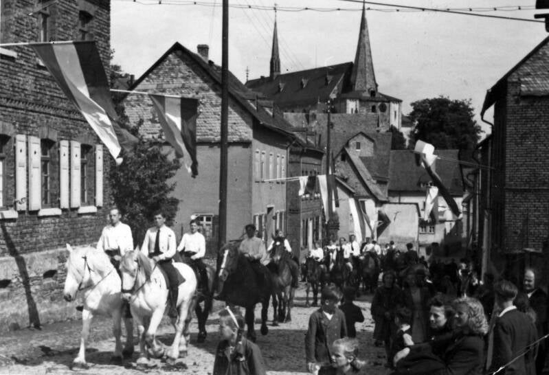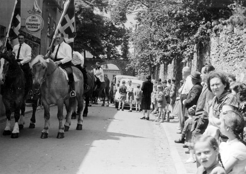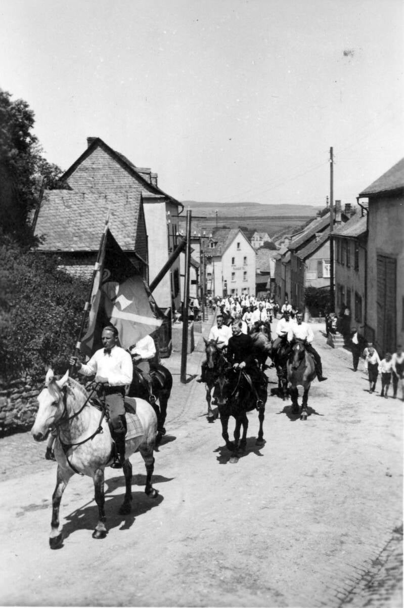 Prozession im Flecken an der Ecke Gasthaus Grimm